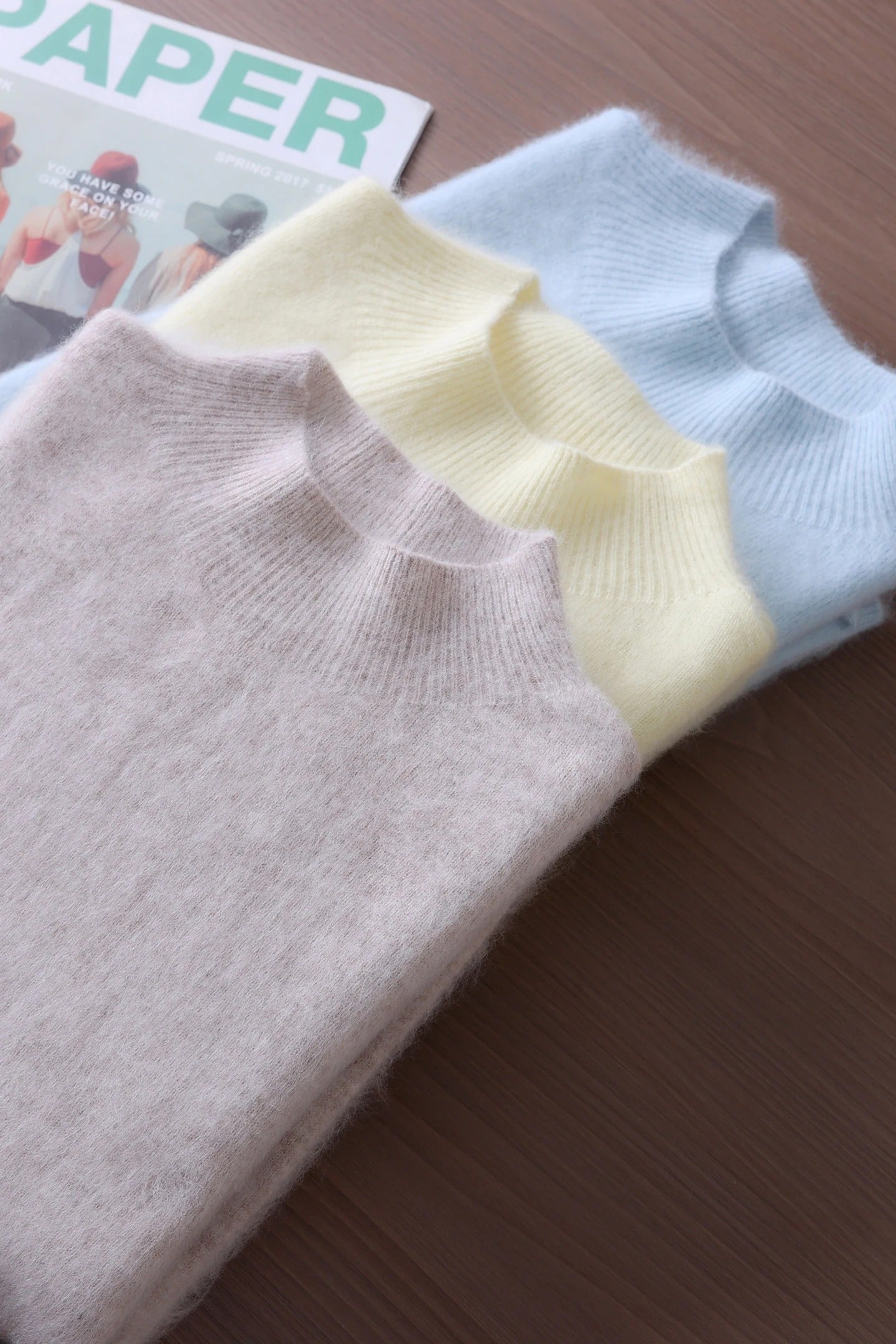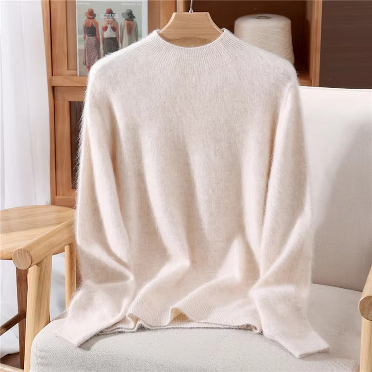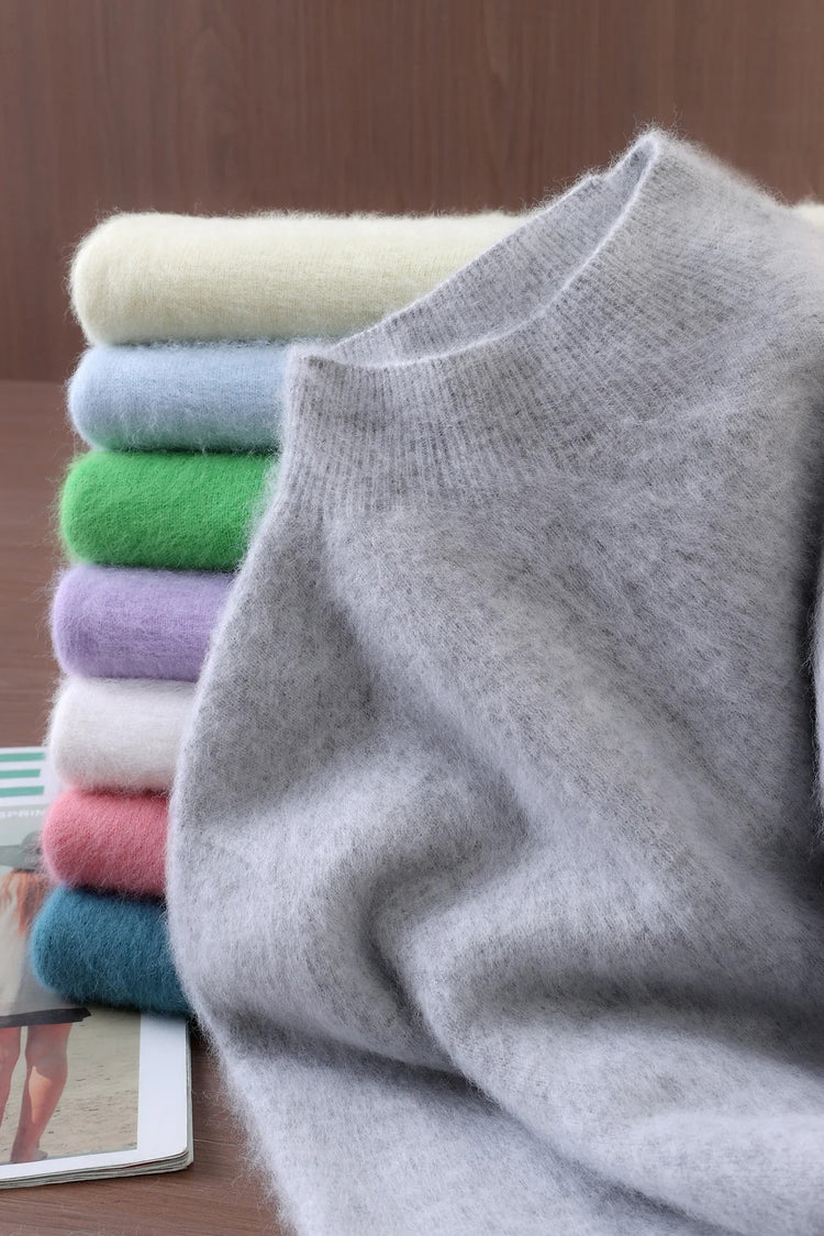 This Cashmere-Feel Mock Neck Sweater offers a soft touch, warm feel, and classic minimalist design. Perfect for autumn and winter, it pairs effortlessly with jeans, skirts, or coats for an elegant everyday look. Lightweight, cozy, and beautifully refined. 🍂❄️