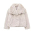 Women’s Cropped Faux Fur Jacket – Snap-Button Lapel Collar Winter Coat