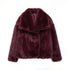 Women’s Cropped Faux Fur Jacket – Snap-Button Lapel Collar Winter Coat